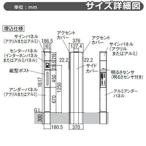 機能ポール フレムス Classic(クラシック) 2型 Cセット アルミ形材 宅配ボックス:ハーフ 前入れ前出し