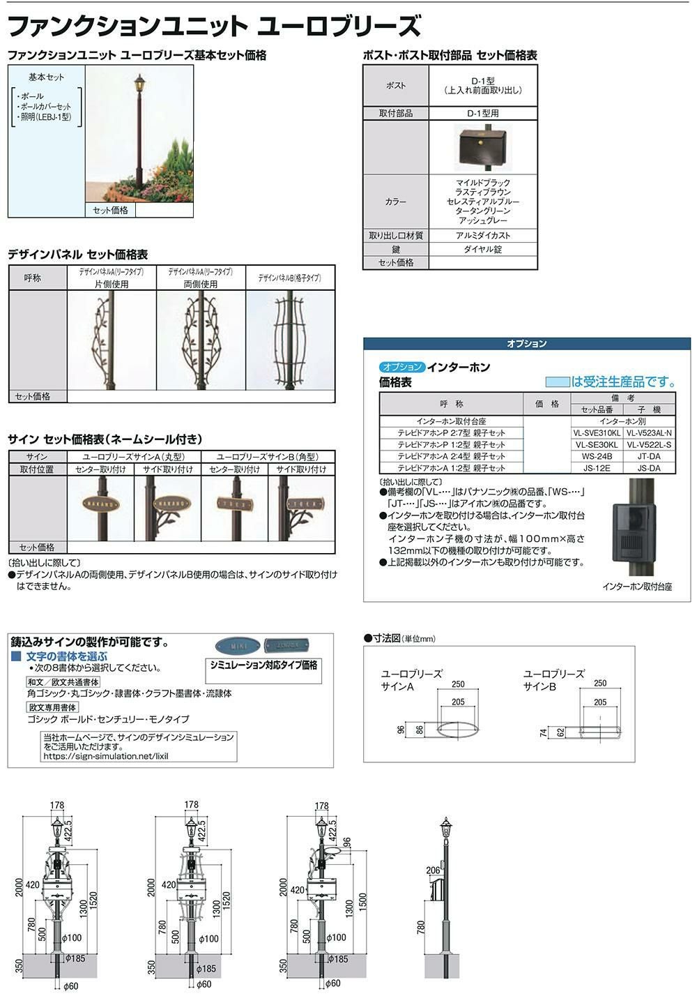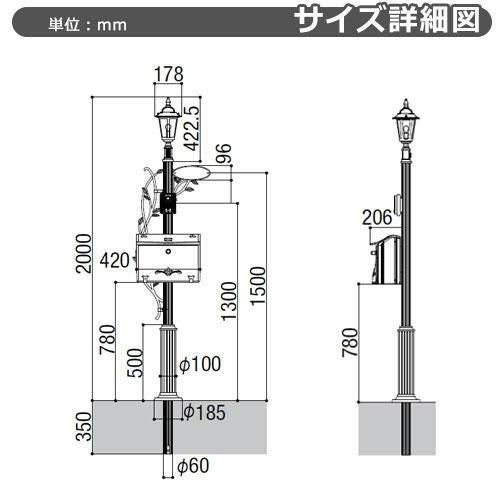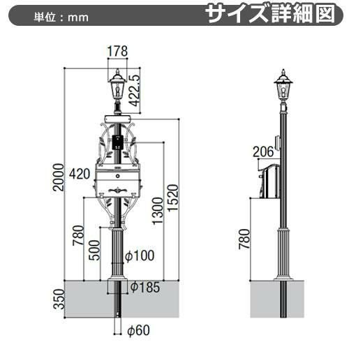 柱+ポスト+照明付き+鋳物サイン