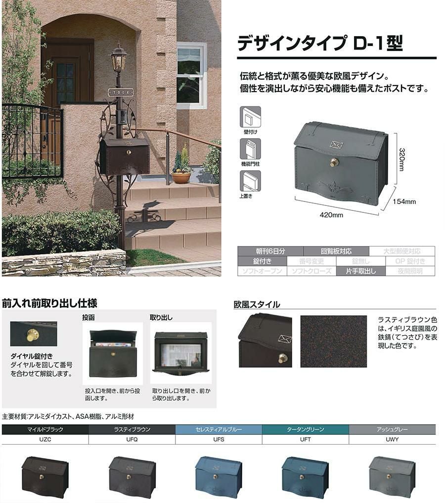 機能ポール フレムス Classic(クラシック) 1型 Aセット アルミ形材 宅配ボックス:ミドル 前入れ後出し