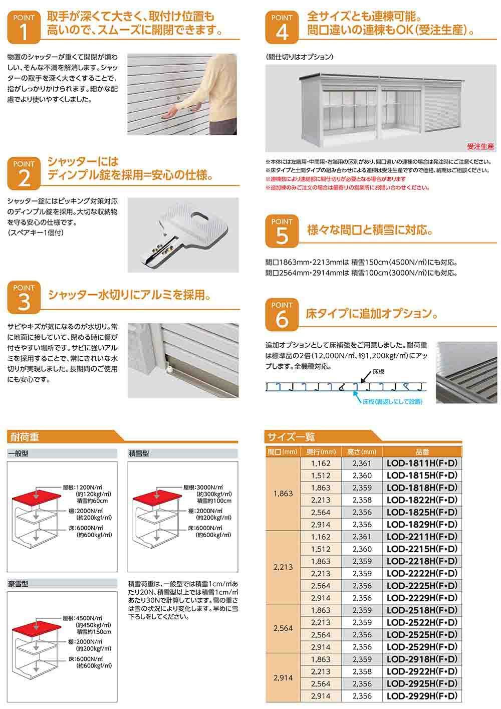 エルモシャッター 中・大型物置 LODU-2229HD 土間タイプ 追加棟 豪雪型 間口2213×奥行2914×高さ2356