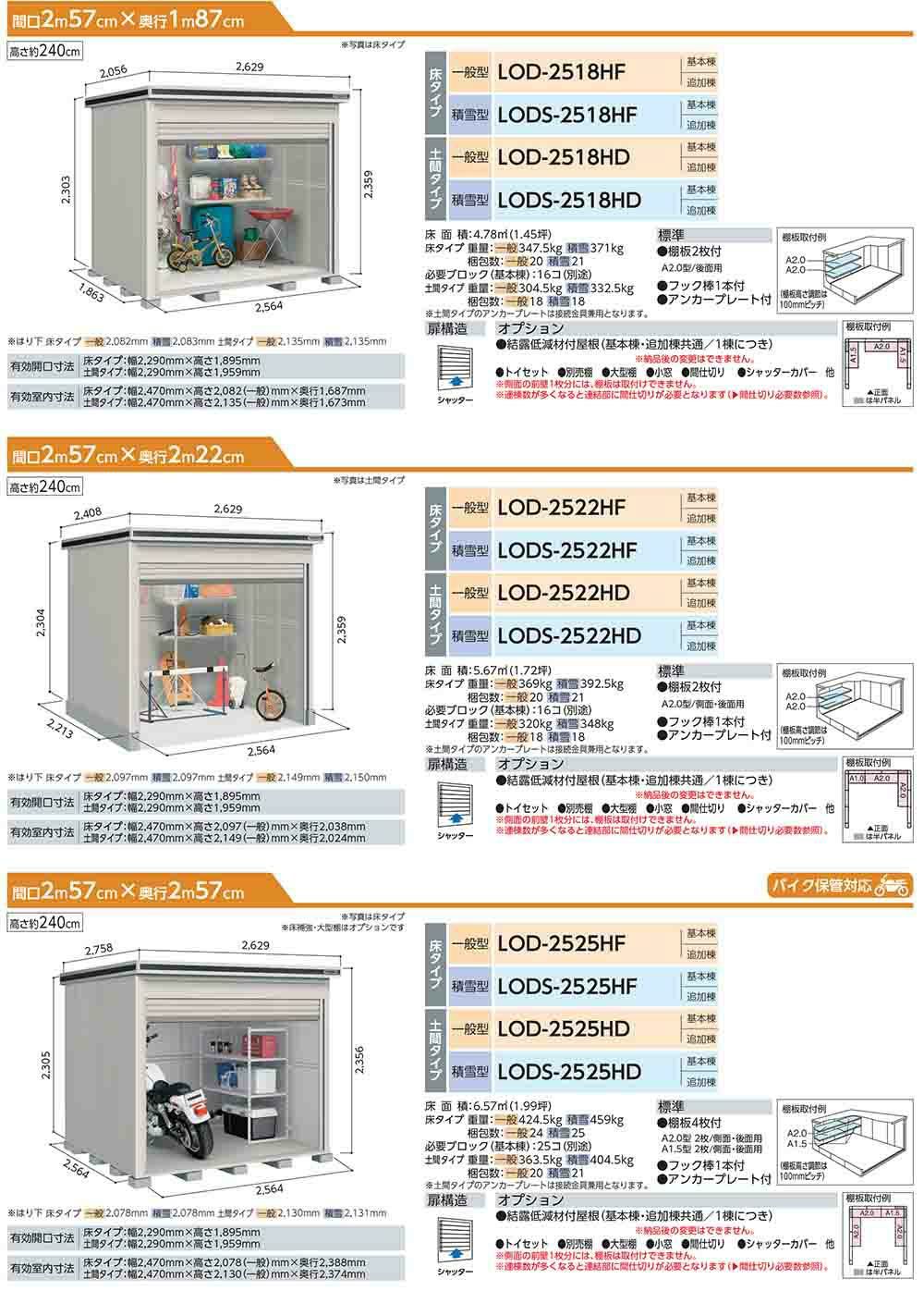 エルモシャッター 中・大型物置 LODS-2522HD 土間タイプ 追加棟 積雪型 間口2564×奥行2213×高さ2359
