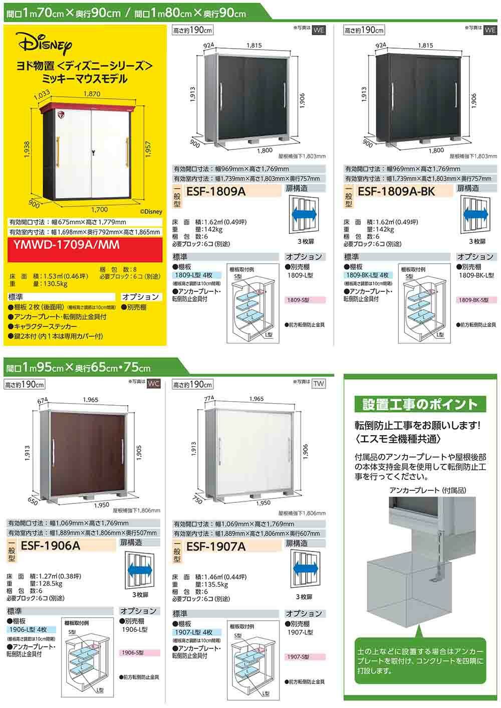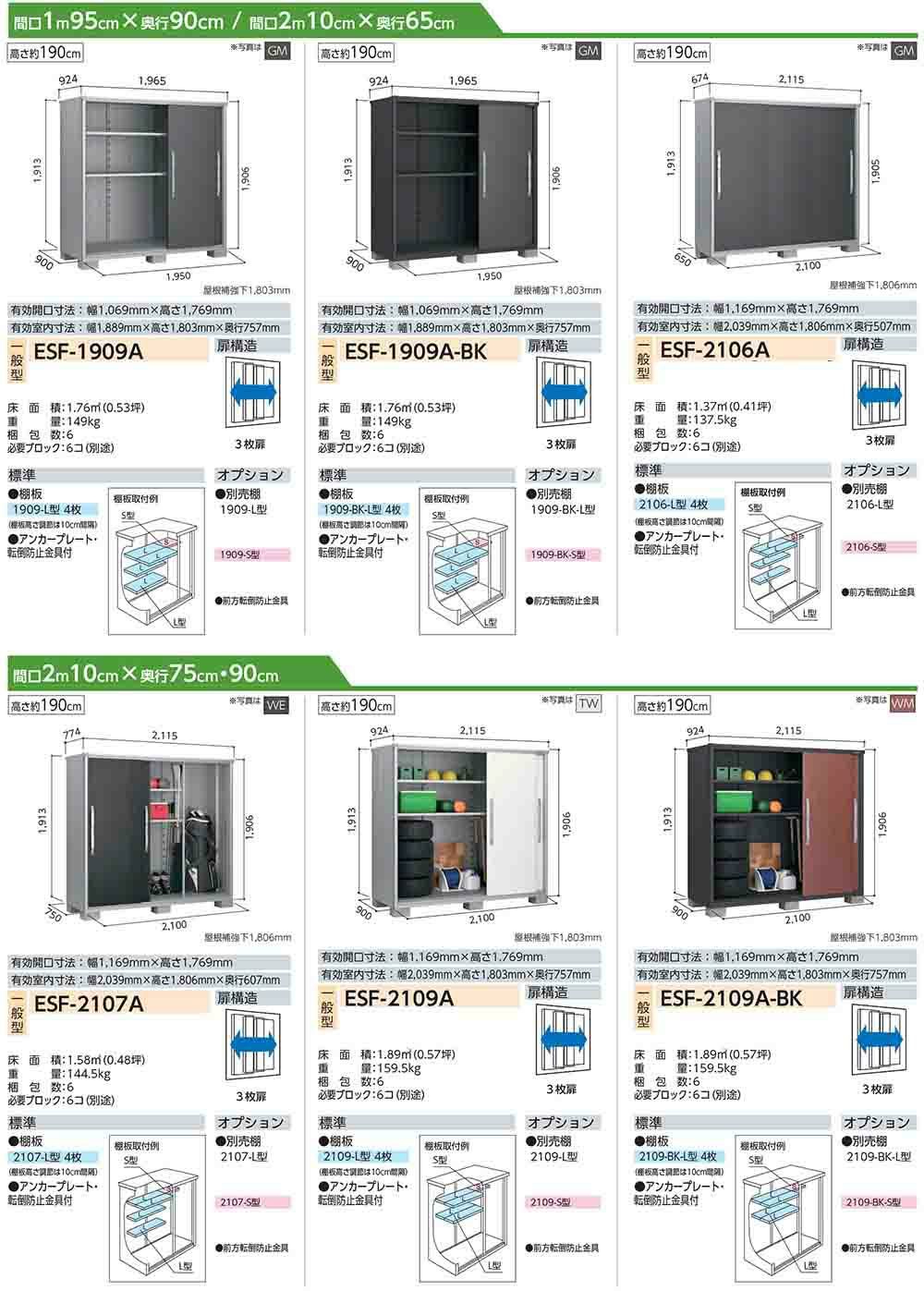 エスモ 小型物置 ESF-1909A 3枚扉タイプ 間口1950×奥行900×高さ1913