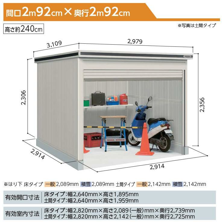 エルモシャッター LODS-2922HD 物置 積雪型 土間タイプ 基本棟