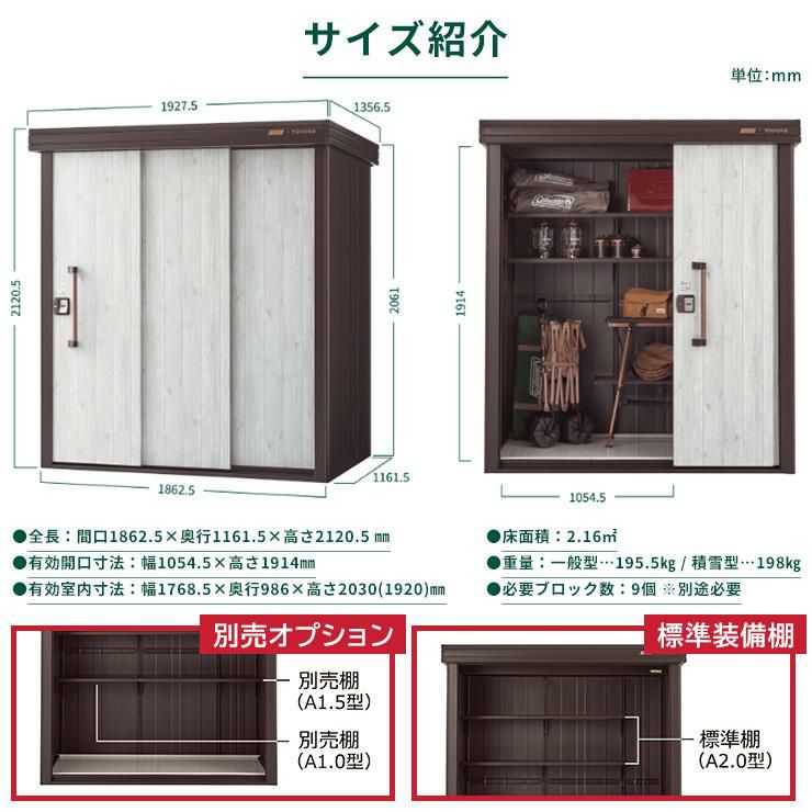 ヨド物置 エルモ 積雪型 コールマンモデル ブラウン 間口1862.5×奥行1161.5×高さ2120.5mm LMDS-1811-CM/BR