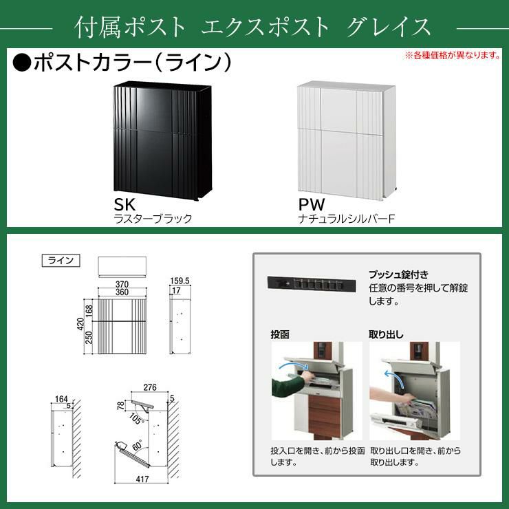 デザインポストユニット 1型 照明なし本体 エクスポスト グレイス(ラインSK) Limia表札 セット 前入れ前出し