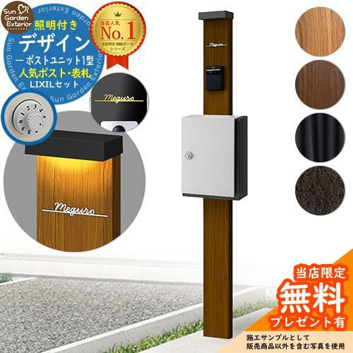 シンプルポストユニット 1型 照明付き本体 T10型ポスト(複合色) Limia表札 セット 前入れ前出し