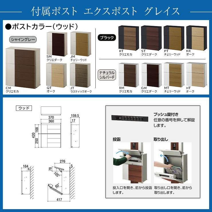 デザインポストユニット 1型 照明なし本体 エクスポスト グレイス(ウッド) Limia表札 セット 前入れ前出し