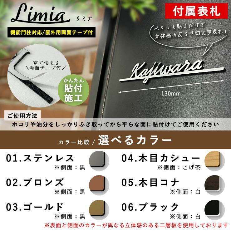 デザインポストユニット 1型 照明なし本体 T10型ポスト(複合色) Limia表札 セット 前入れ前出し