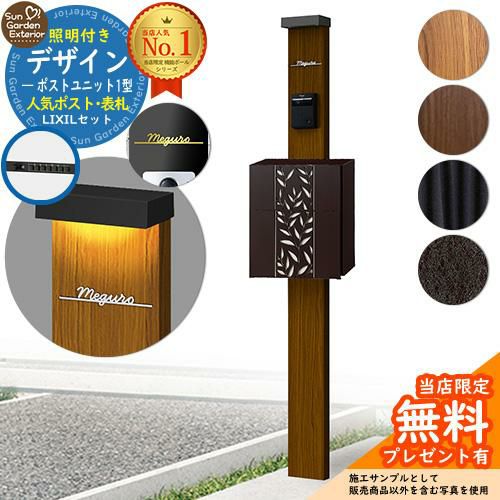 デザインポストユニット 1型 照明付き本体 P-1型ポスト Limia表札 セット 前入れ前出し