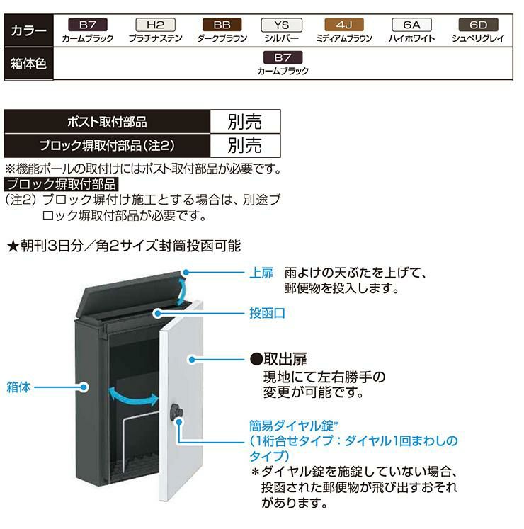 リクシル ポスト ポール式 鍵付き プッシュ 錠付き おしゃれ