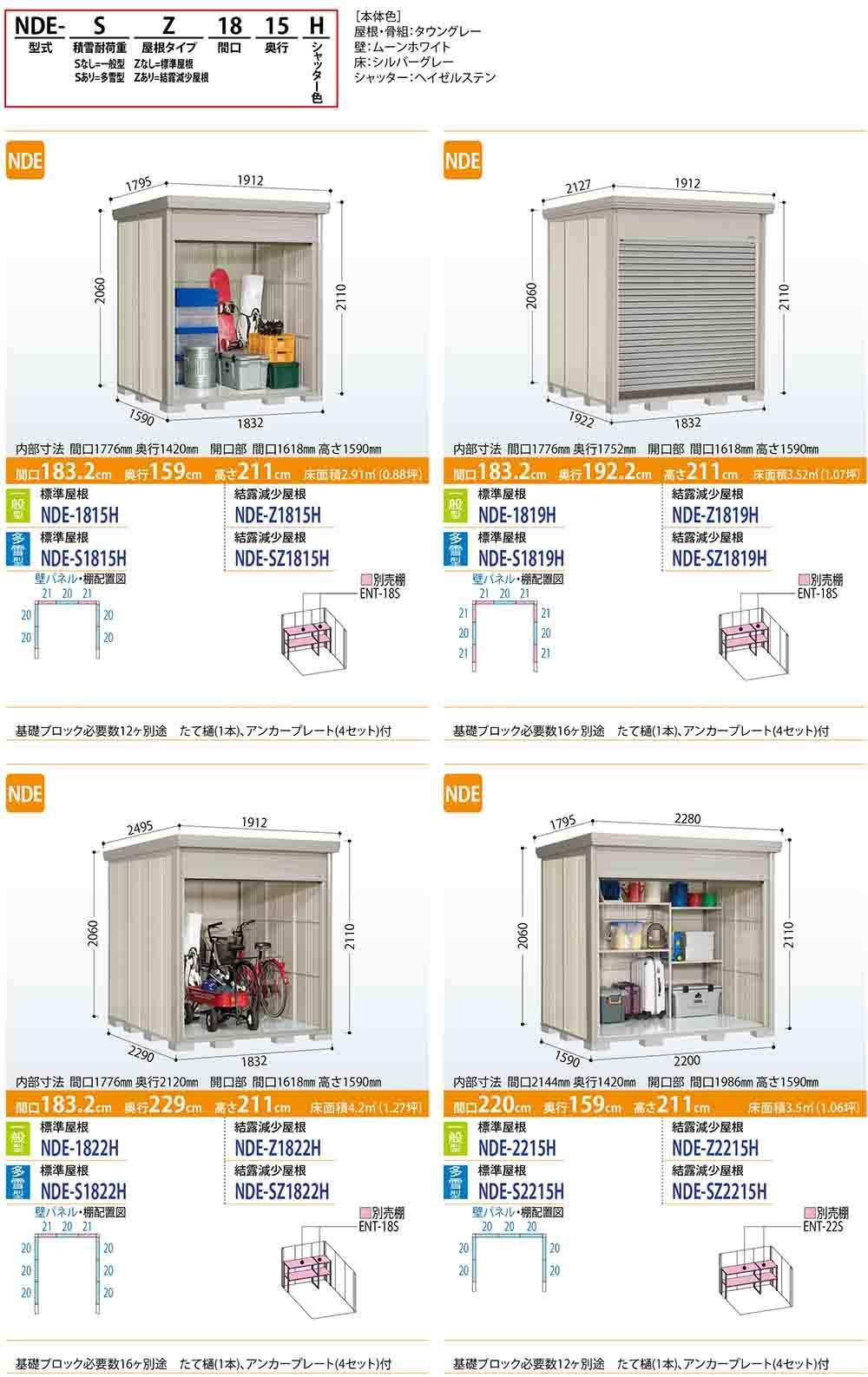 Mr.ストックマン ダンディ 巻上げシャッター扉タイプ 中・大型物置 NDE-S2926 標準屋根 多雪型 間口2900×奥行2622×高さ2110
