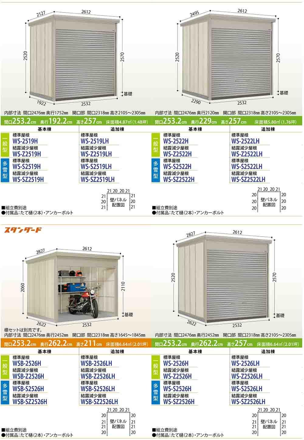 Mr.シャッターマン ダンディ 中型物置 WS-S2226LH 標準屋根 追加棟 多雪型 間口2200×奥行2622×高さ2570