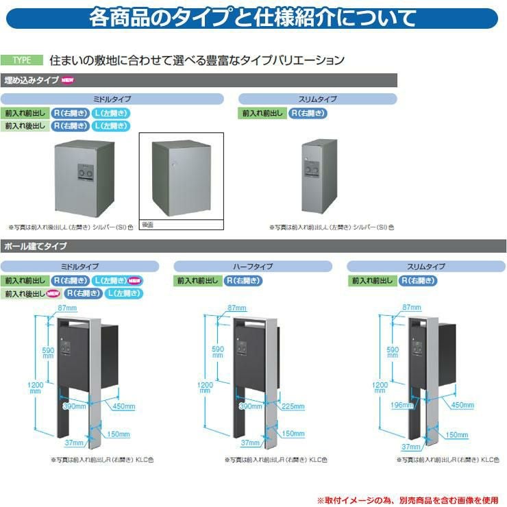 宅配ボックス フレムス Classic(クラシック) ポール埋め込みタイプ ミドル 後出し KLC色