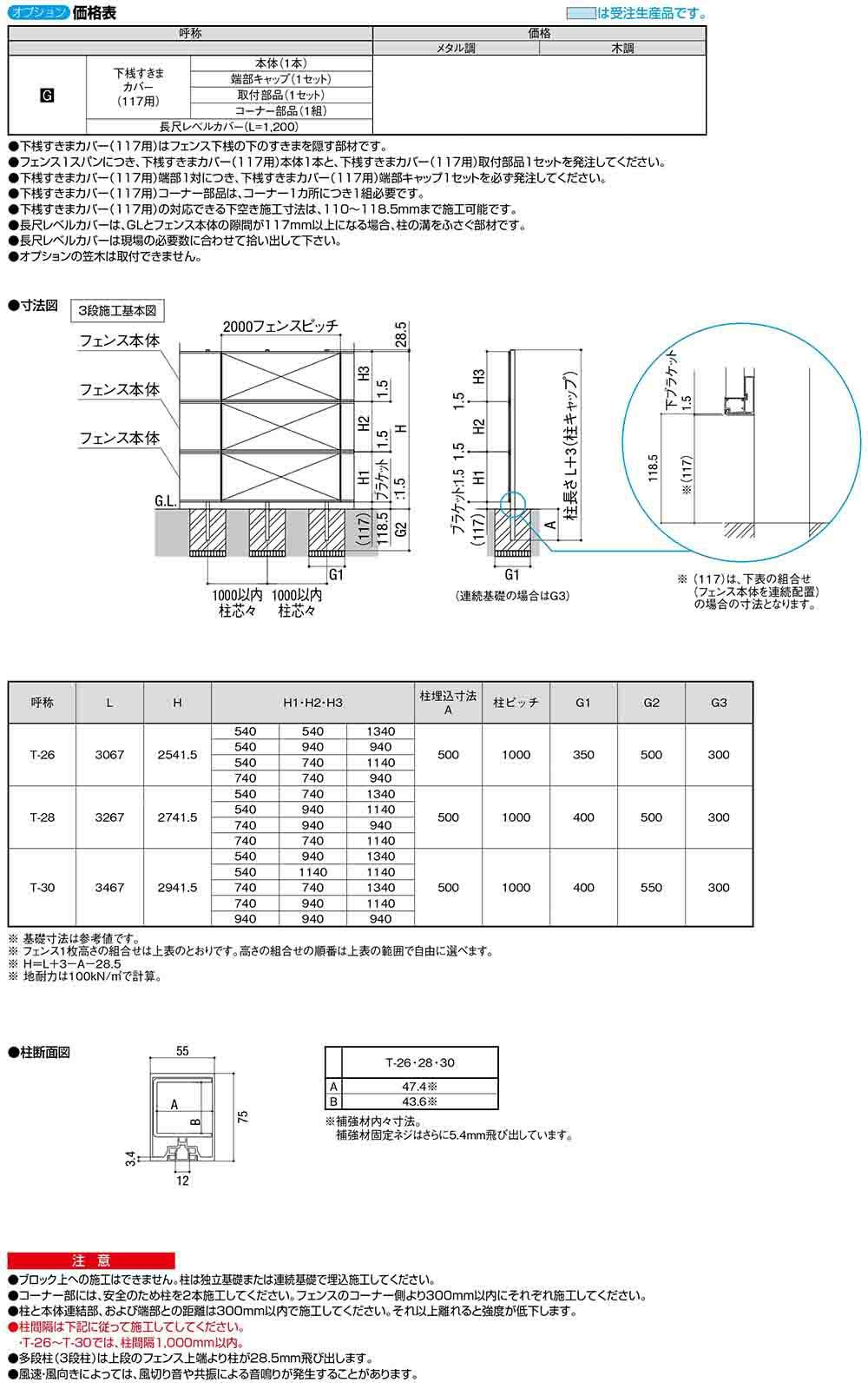 フェンスAA 多段柱(3段柱) 55×75 (T-28) 木調色
