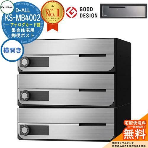 D-ALL 集合住宅用ポスト KS-MB4002PY-3K 横開き アナログカード錠 前入れ前出し 3戸用