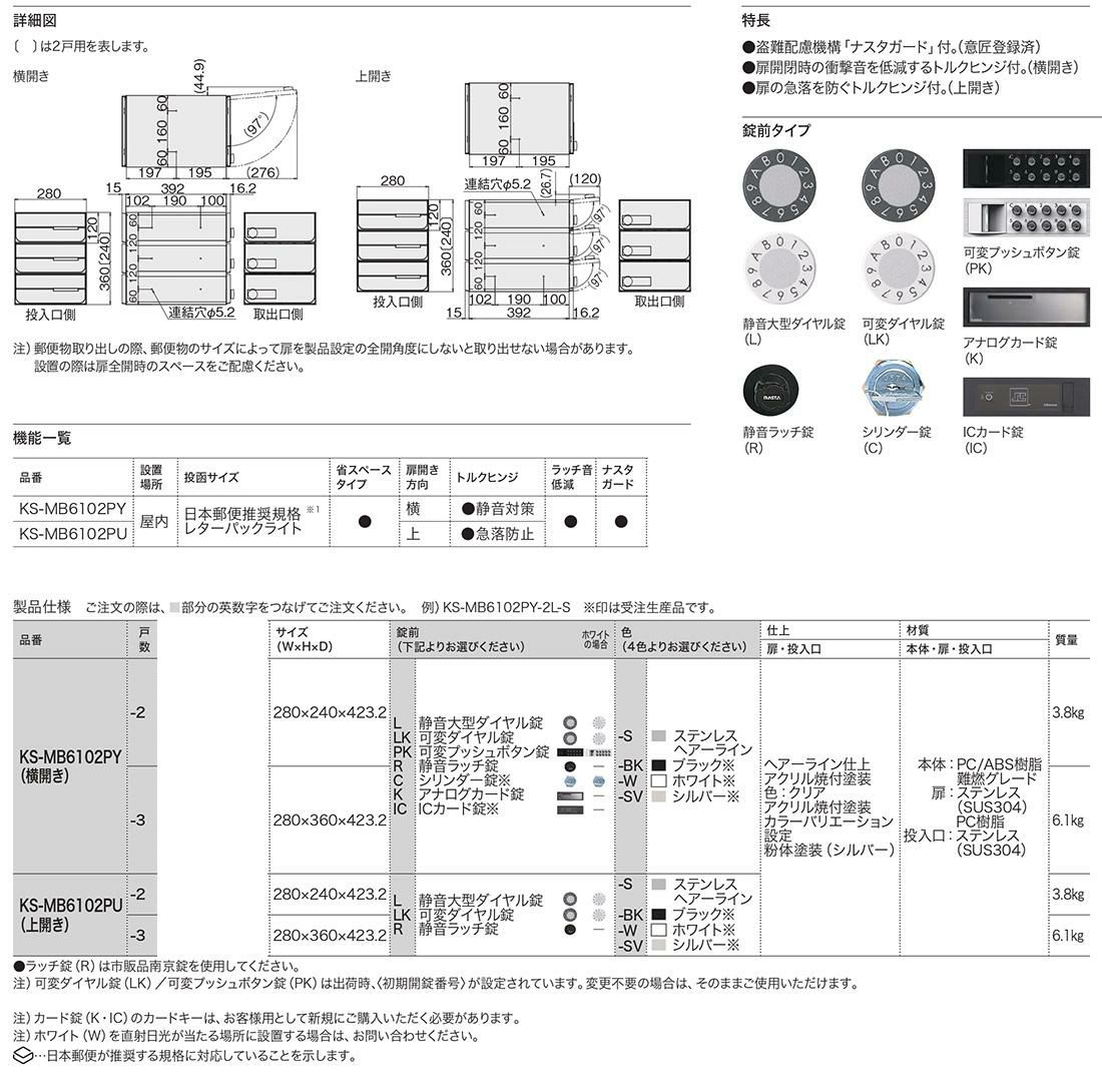 D-ALL 集合住宅用ポスト KS-MB6402PU-2R-□ 静音ラッチ錠 前入れ後出し 2戸用 上開き 両側防滴タイプ