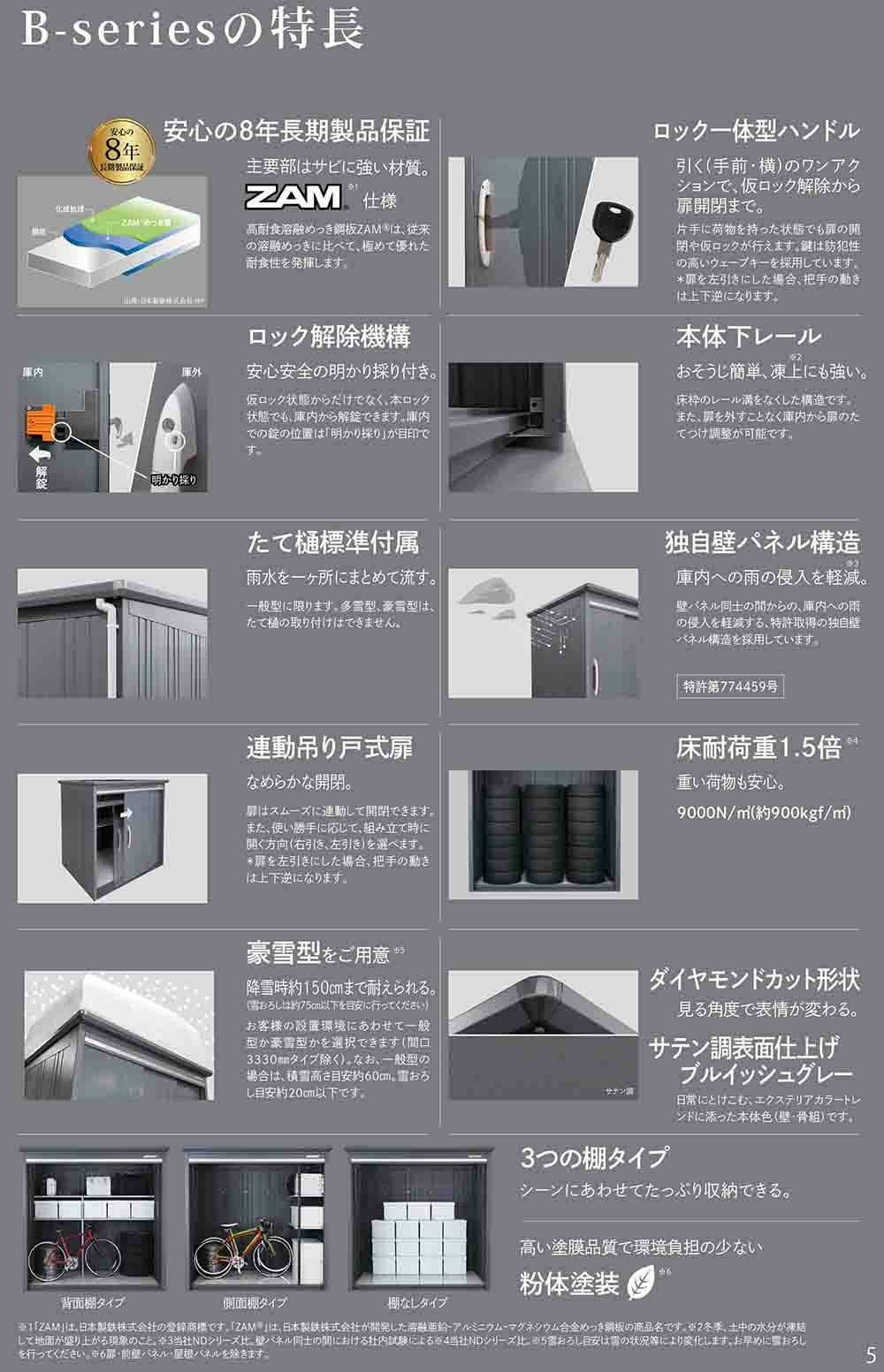BELOS ヴェロス 中・大型物置 B-T3330 結露減少屋根 背面棚タイプ 多雪型 間口3330×奥行3000×高さ2157