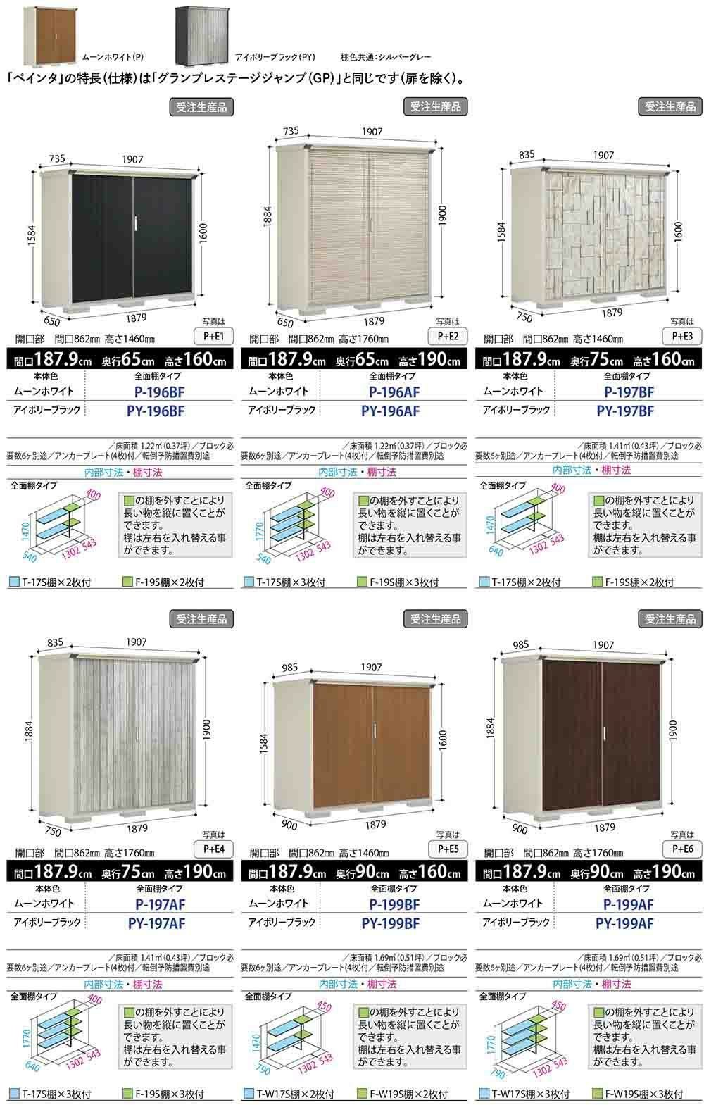 PEINTE ぺインタ UVインクジェット塗装物置 グランプレステージジャンプ P-196BF 全面棚タイプ 間口1879×奥行650×高さ1600