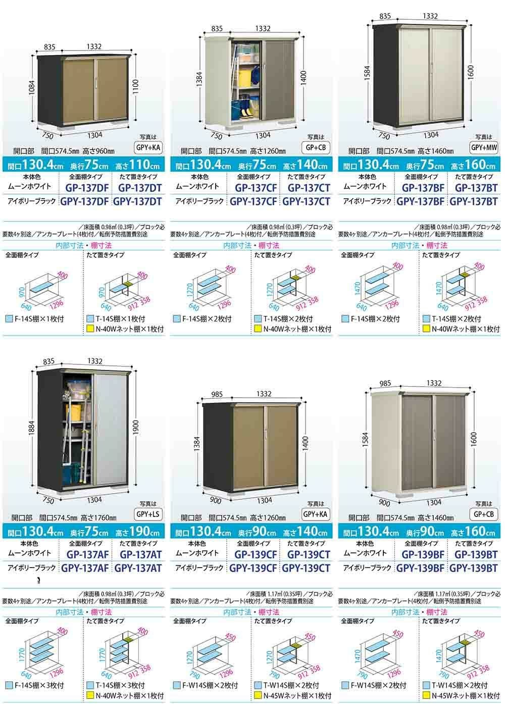 グランプレステージ ジャンプ 小型物置 GP-137DF 全面棚タイプ 間口1304×奥行750×高さ1100