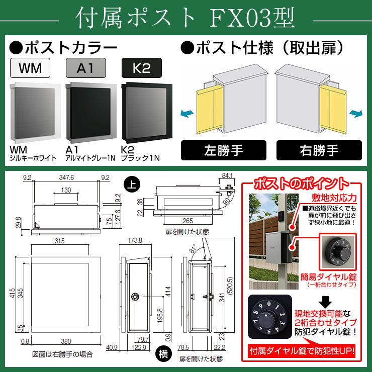 デザインポストユニット 1型 照明なし本体 FX02型ポスト(簡易錠) セット 上入れ横出し