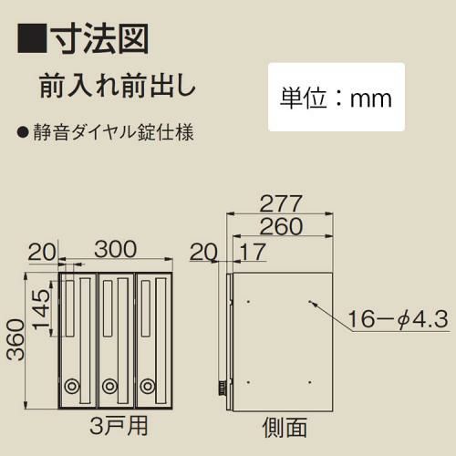 D-ALL 集合住宅用ポスト KS-MB3002PU-3LKT 可変ダイヤル錠 前入れ前出し 3戸用 タテ型