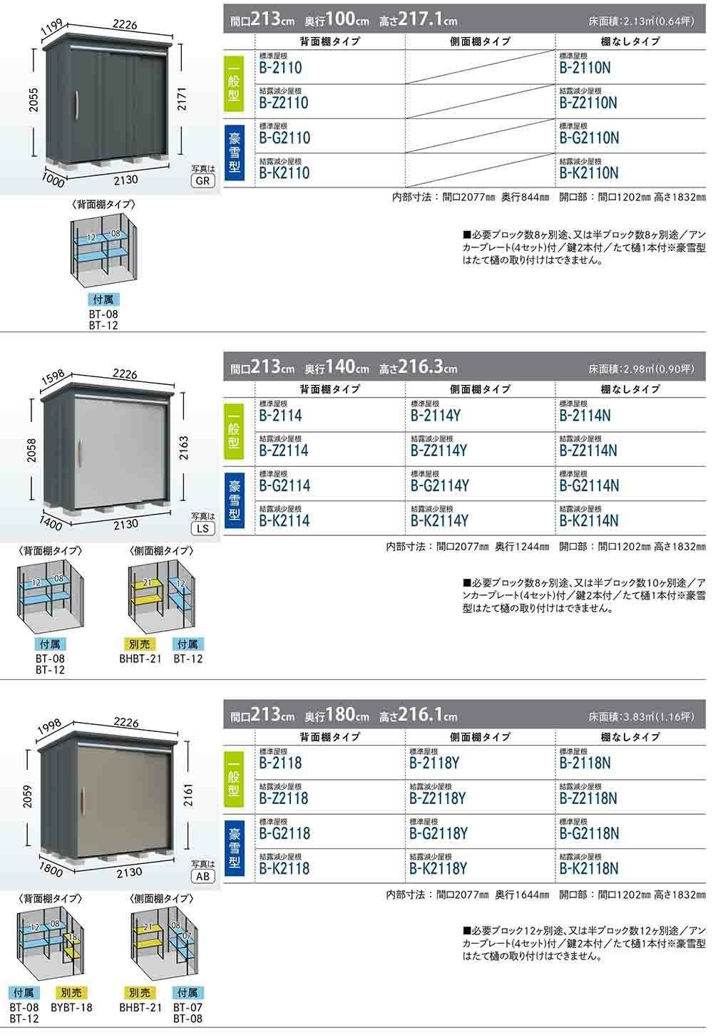 BELOS ヴェロス 中・大型物置 B-G2130 標準屋根 背面棚タイプ 豪雪型 間口2130×奥行3000×高さ2157