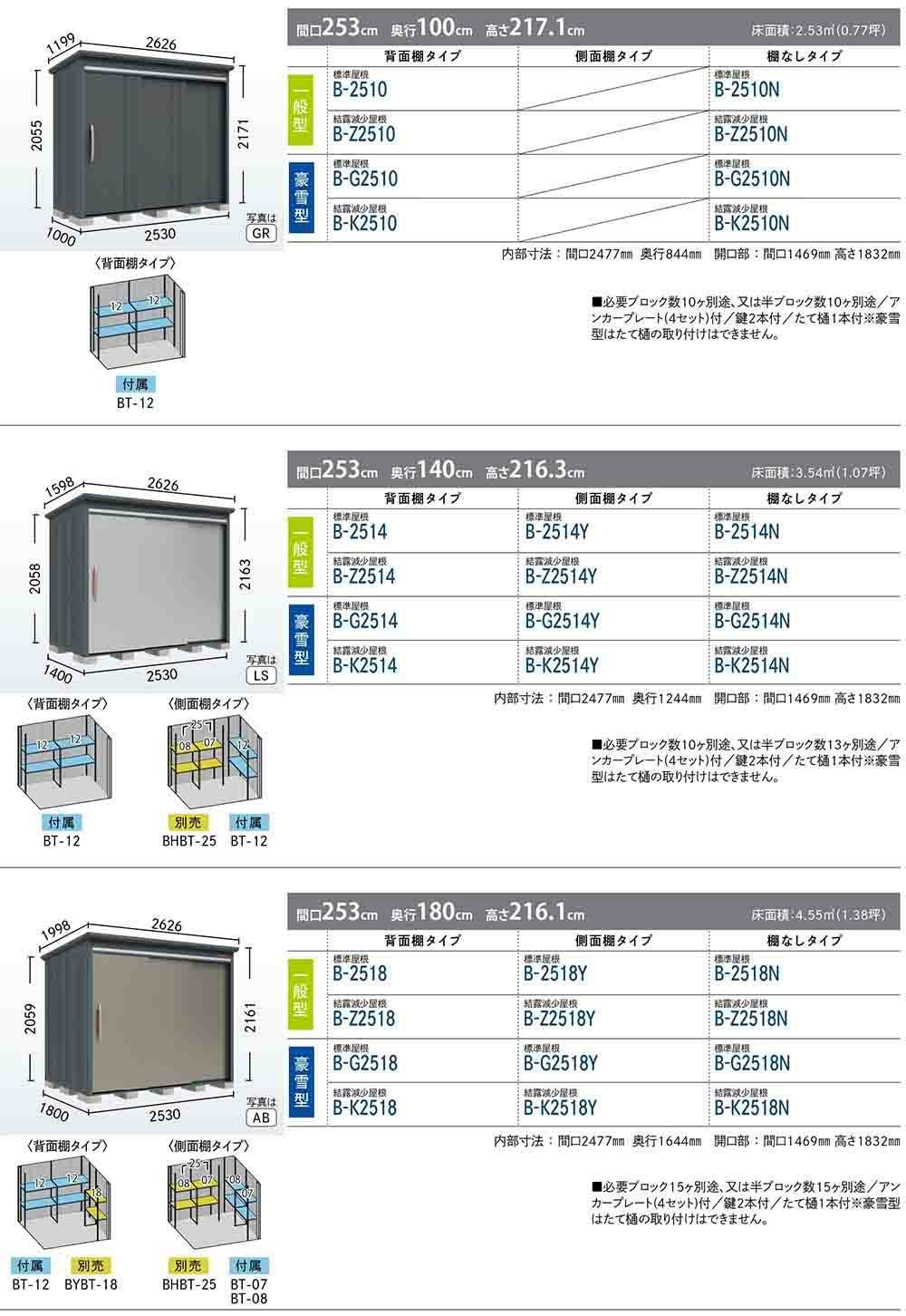 BELOS ヴェロス 中・大型物置 B-G1726Y 標準屋根 側面棚タイプ 豪雪型 間口1730×奥行2600×高さ2158
