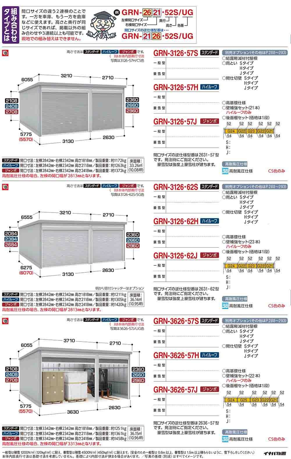 ガレーディア ガレージ GRN-3626・57J 1台+α組合せタイプ ジャンボ 間口サイズ:通常仕様 豪雪型 幅6260×奥行5775×高さ2960