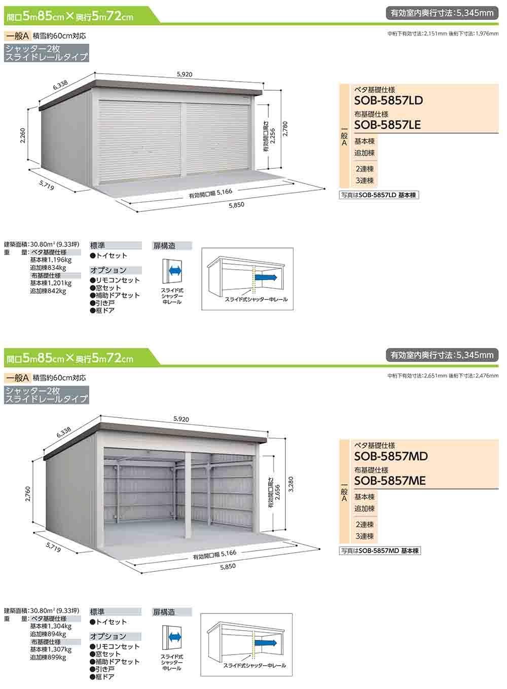 ヨド倉庫 SOB-5857LE 布基礎仕様 追加棟 一般A 間口5850×奥行5719×高さ2780
