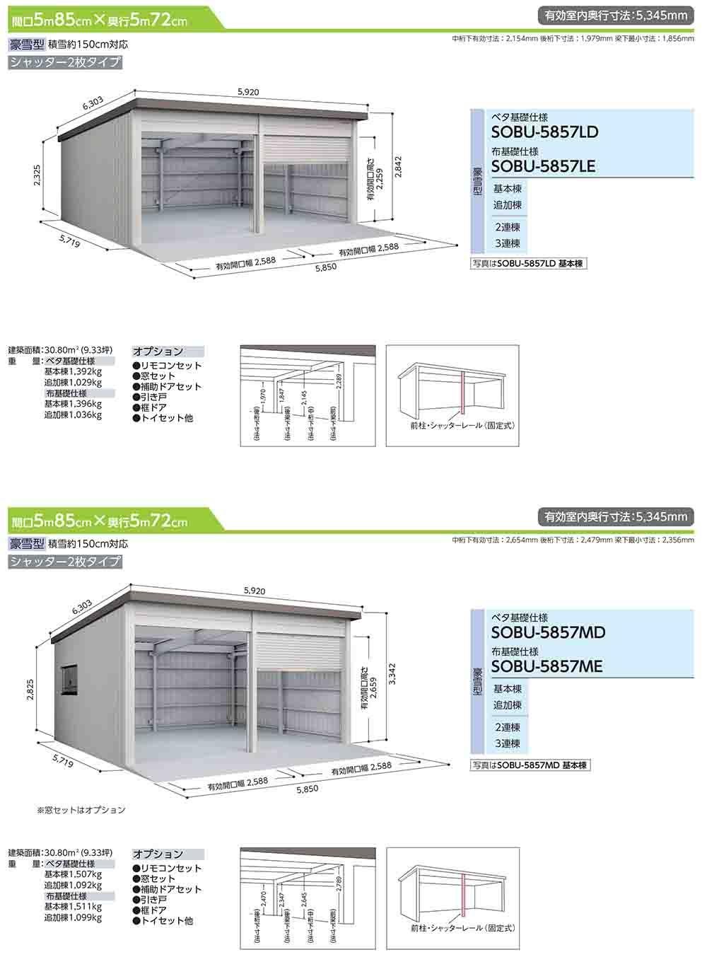 ヨド倉庫 SOBU-5857LD ベタ基礎仕様 追加棟 豪雪型 間口5850×奥行5719×高さ2842