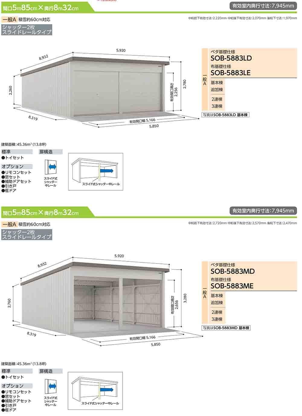 ヨド倉庫 SOB-5883MD ベタ基礎仕様 追加棟 一般A 間口5850×奥行8319×高さ3280