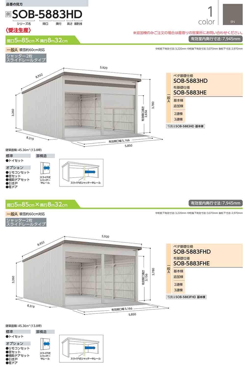 ヨド倉庫 SOB-5883FHE 布基礎仕様 追加棟 一般A 間口5850×奥行8319×高さ3780