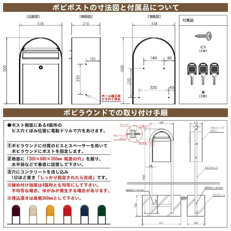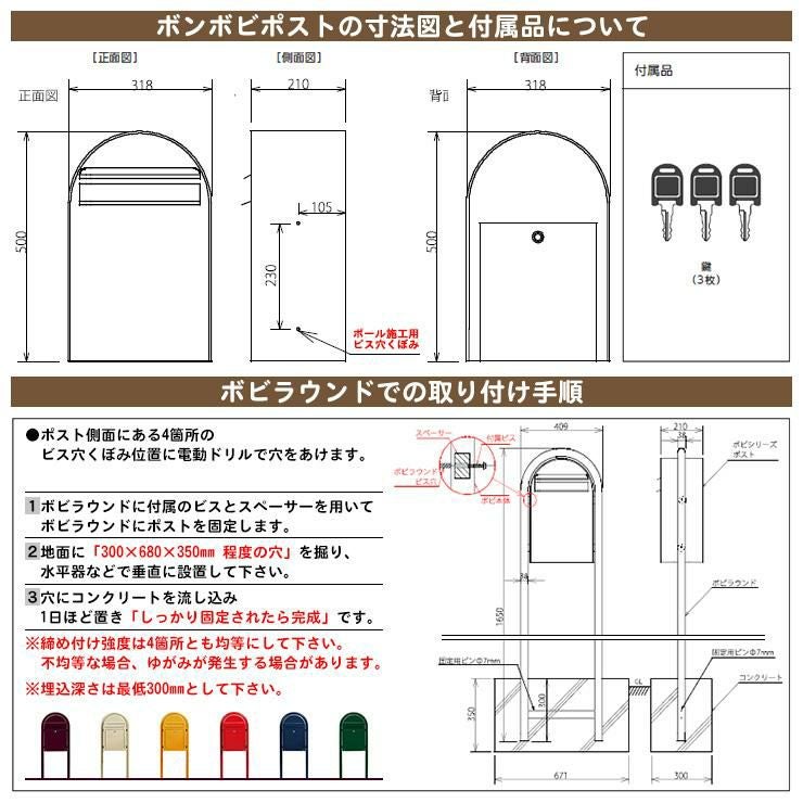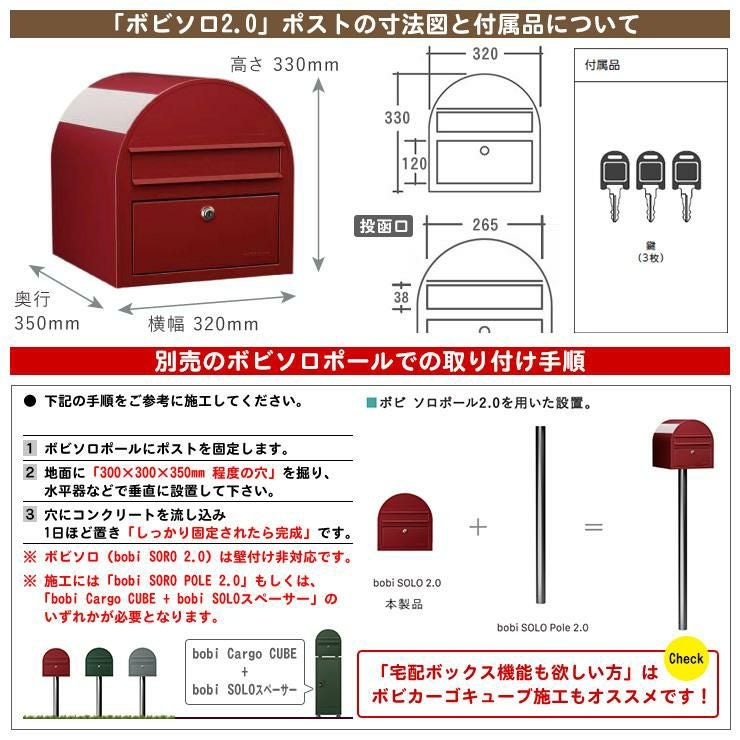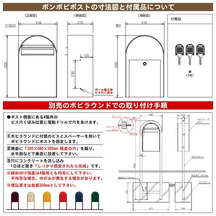 セキスイデザインワークス ポスト ポールセット ポール式 鍵付き ボンボビポスト bobiシリーズ 北欧 おしゃれ 前入れ後出し 防滴