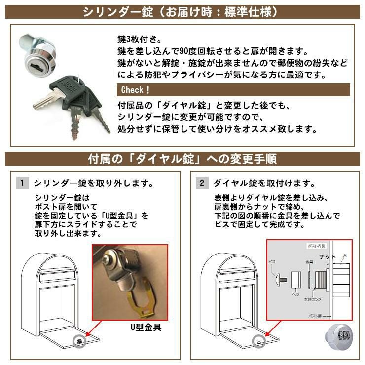 デザインポストユニット 1型 照明なし本体 T13型ポスト(簡易錠) セット 上入れ前出し