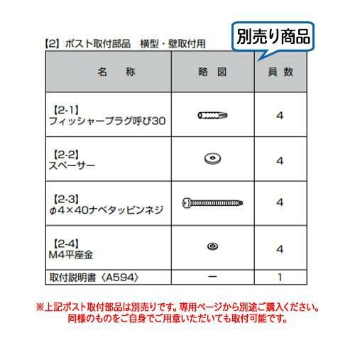 デザインポストユニット 1型 照明なし本体 FX01型ポスト(簡易錠) セット 上入れ横出し