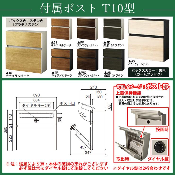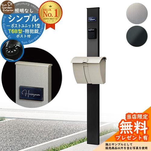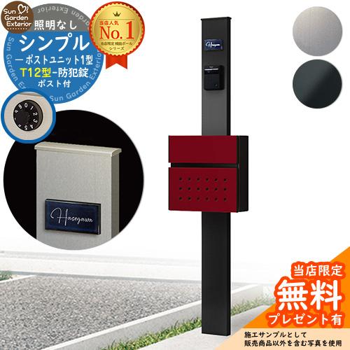 シンプルポストユニット 1型 照明なし本体 T13型ポスト(防犯錠) セット 上入れ前出し