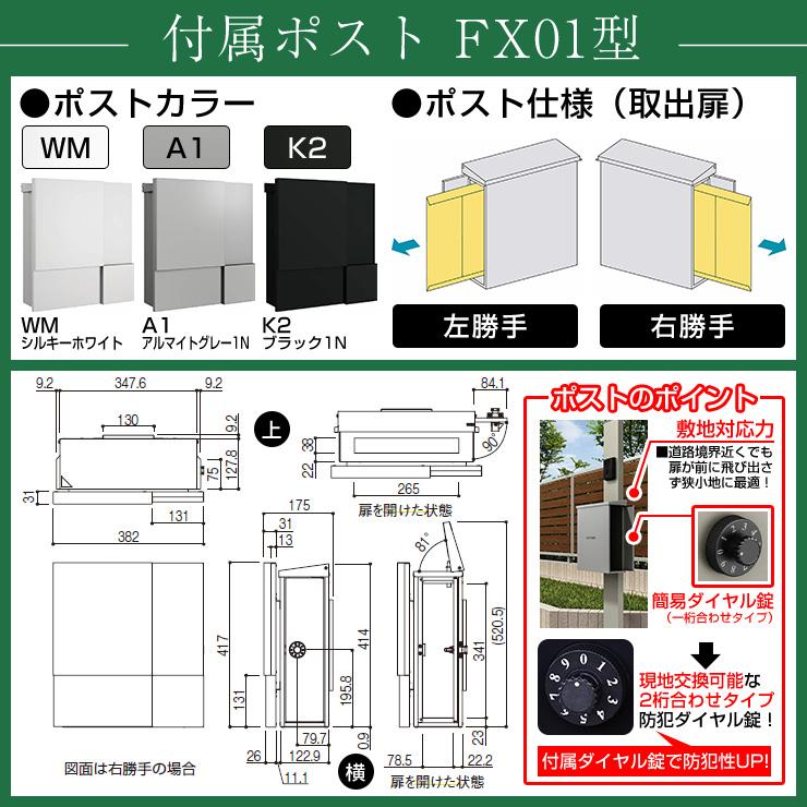 シンプルポストユニット 1型 照明なし本体 FX01型ポスト(簡易錠) セット 上入れ横出し
