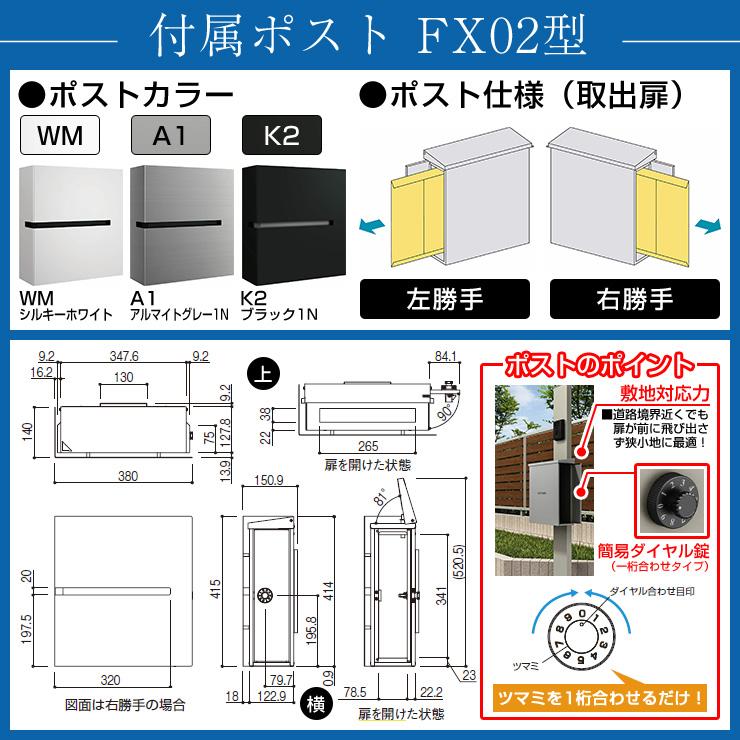 シンプルポストユニット 1型 照明なし本体 FX02型ポスト(簡易錠) セット 上入れ横出し