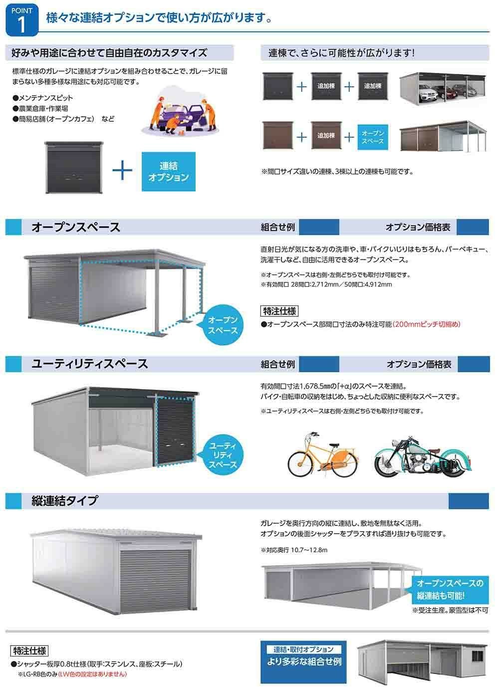 【YODOKO正規取扱店】有効間口寸法1,678.5mmの「+α」のスペースを連結。バイク・自転車の収納をはじめ、ちょっとした収納に便利なスペースです。