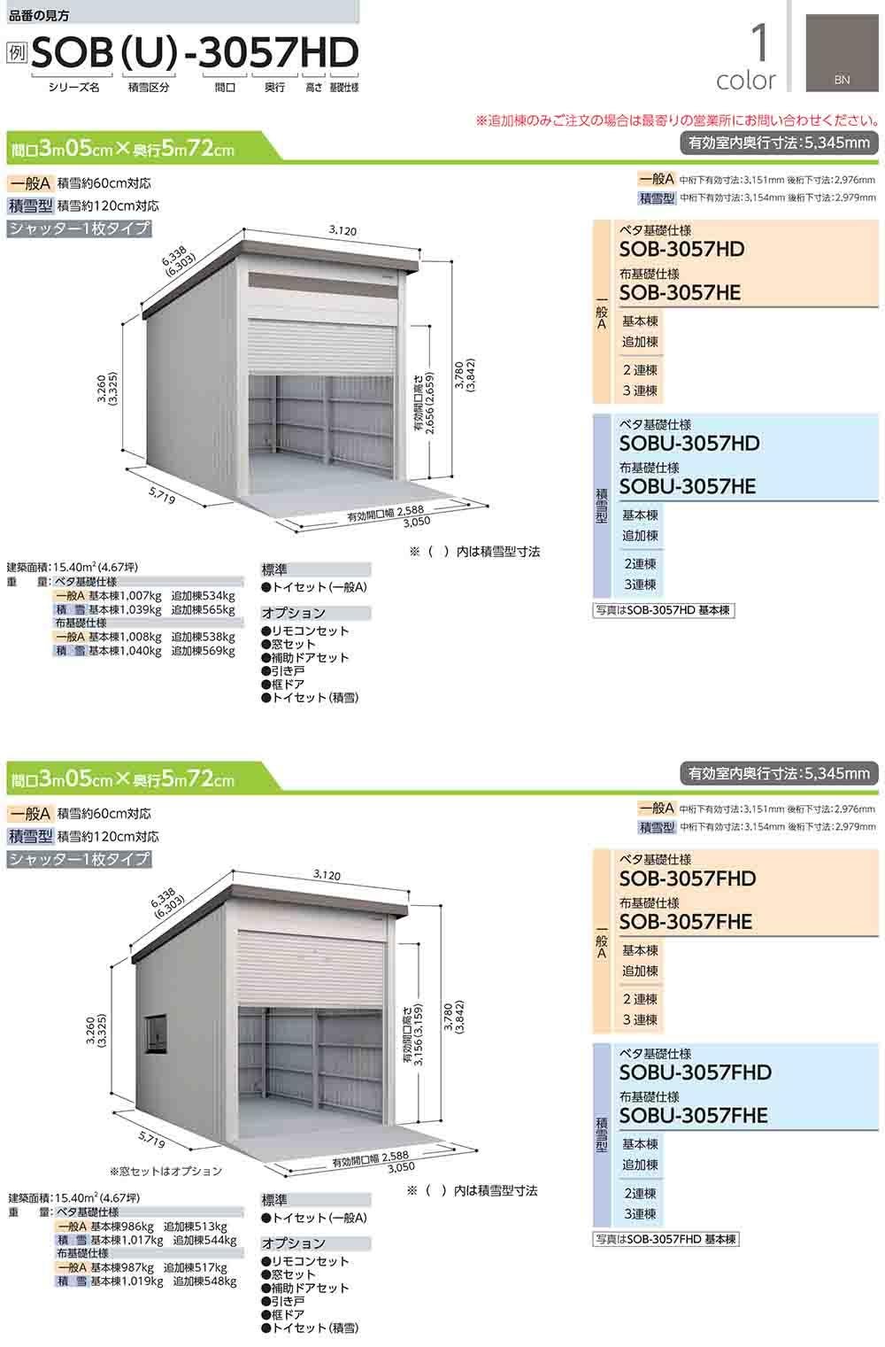 ヨド倉庫 SOBU-3057FHD ベタ基礎仕様 追加棟 積雪型 間口3050×奥行5719×高さ3842