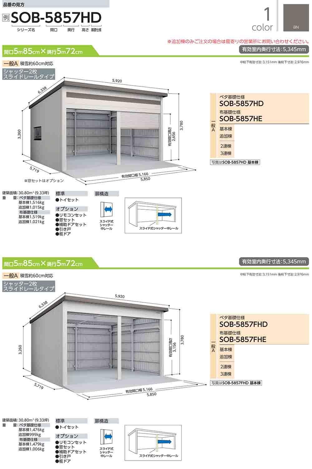 ヨド倉庫 SOB-3057HD ベタ基礎仕様 追加棟 一般A 間口3050×奥行5719×高さ3780