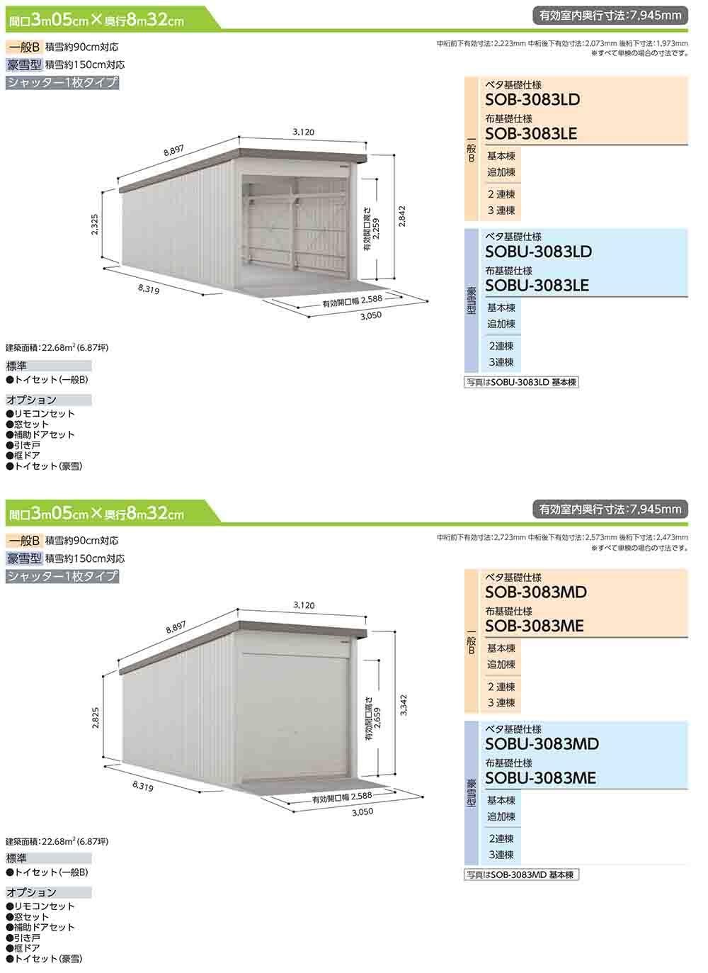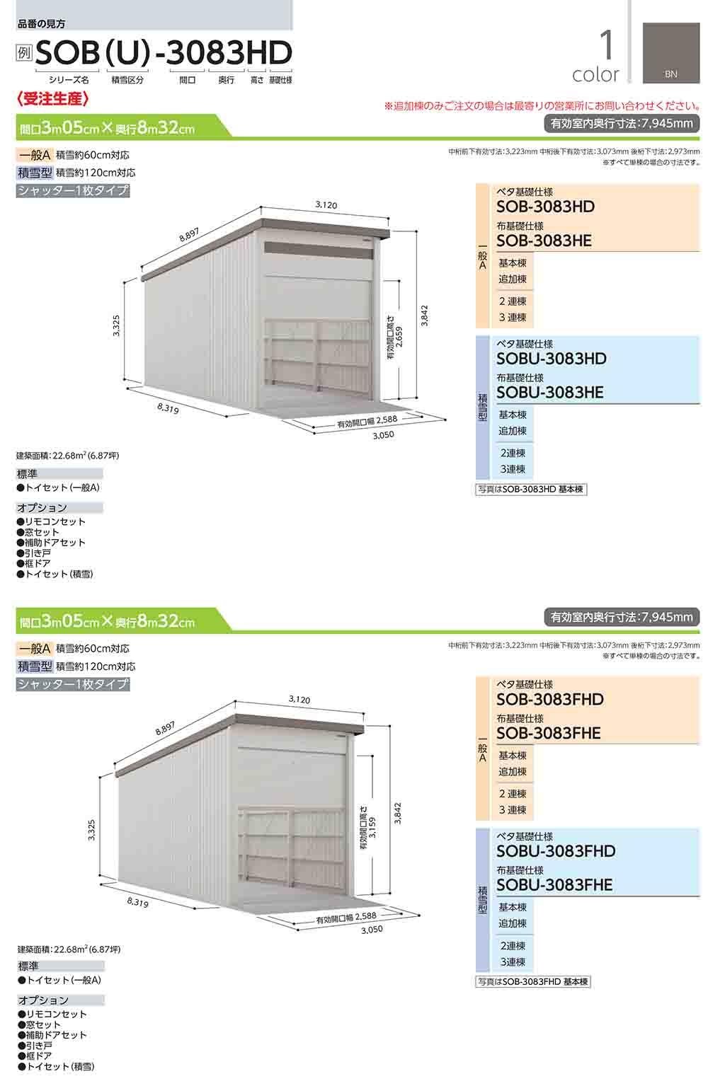 ヨド倉庫 SOBU-3083HD ベタ基礎仕様 追加棟 積雪型 間口3050×奥行8319×高さ3842