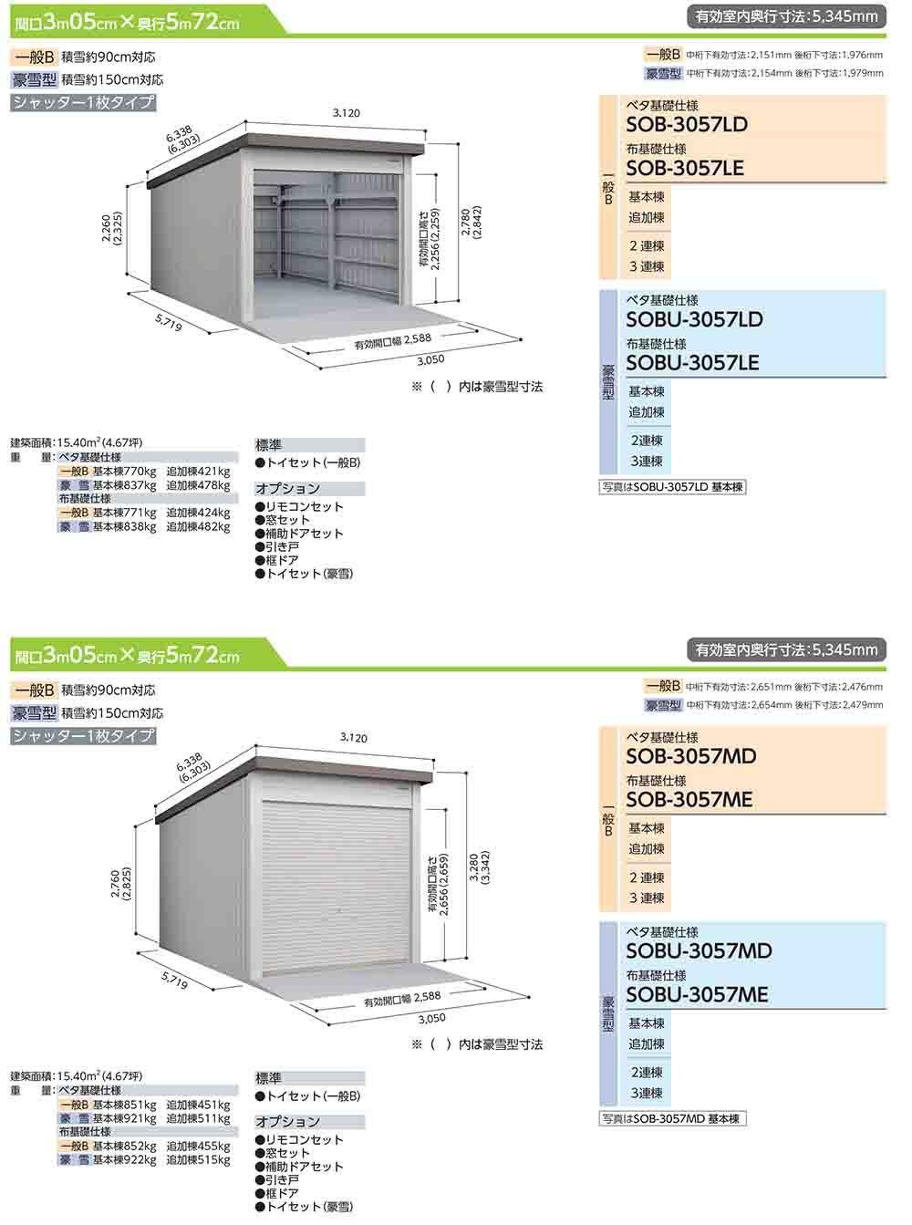 ヨド倉庫 SOBU-3057HD ベタ基礎仕様 追加棟 積雪型 間口3050×奥行5719×高さ3842