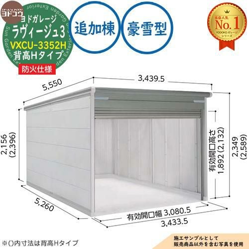ヨドガレージ ラヴィージュ3 防火仕様 VXCU-3352H シャッタータイプ 背高Hタイプ 追加棟 豪雪型 間口3353×奥行5220×高さ2589