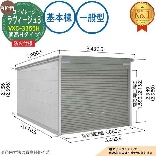 ヨドガレージ ラヴィージュ3 防火仕様 VXC-3355H シャッタータイプ 背高Hタイプ 基本棟 一般型 間口3353×奥行5570×高さ2589