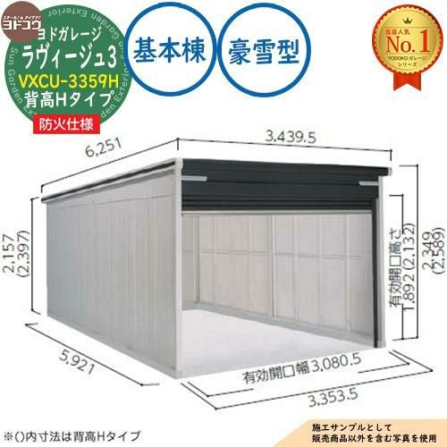 ヨドガレージ ラヴィージュ3 防火仕様 VXCU-3355H シャッタータイプ 背高Hタイプ 基本棟 豪雪型 間口3353×奥行5570×高さ2589