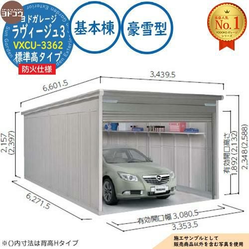 ヨドガレージ ラヴィージュ3 防火仕様 VXCU-3062H シャッタータイプ 背高Hタイプ 基本棟 豪雪型 間口3003×奥行6271×高さ2589