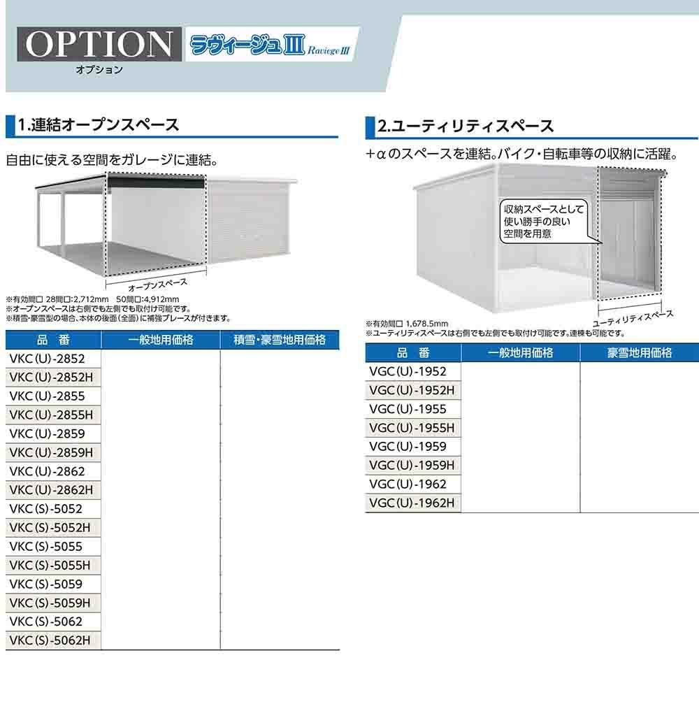 ヨドガレージ ラヴィージュ3 専用オプション VKCU-2862 標準高タイプ 連結オープンスペースのみ 豪雪型