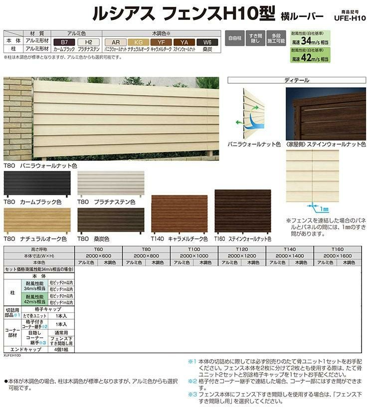 ルシアスフェンスH10型 H1400タイプ(T140) 専用 コーナー部品 木調カラー 目隠しコーナー継手:フェンス下すき間隠し用(60度~300度)