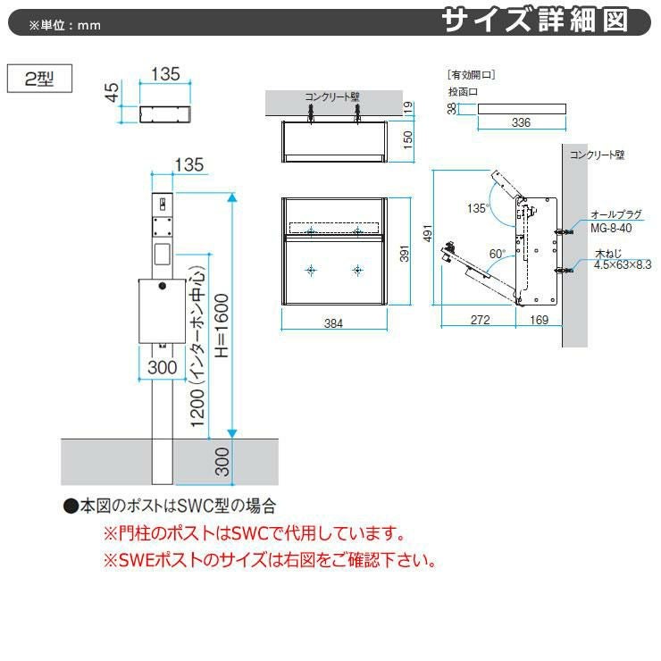 門柱 ポスト YKKap UYA-NE02 郵便ポスト 郵便受け 一戸建て用 屋外 一体型 照明 LED